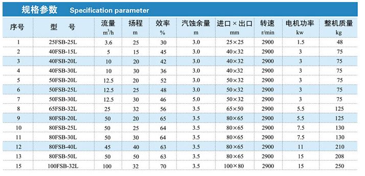 性能參數(shù)表